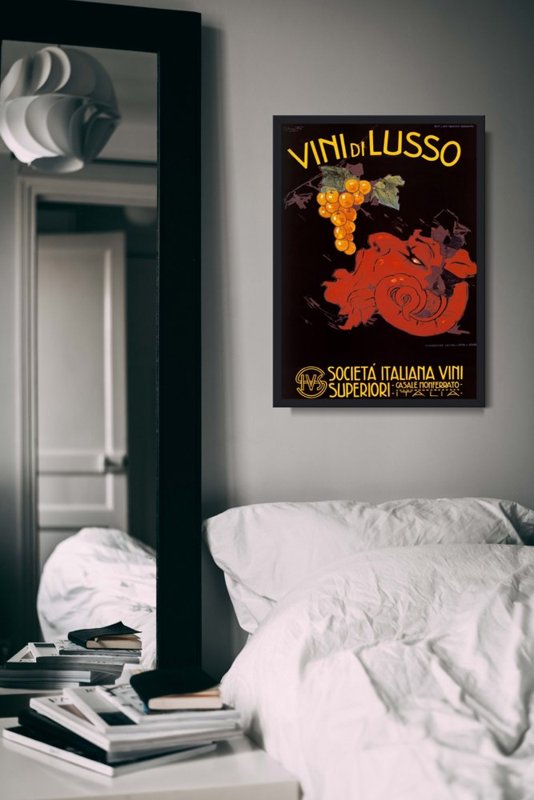 Plakat Plakat z włoskiego wina Vini di Lusso jest nadrukowany na wysokiej jakości płótnie, a nie na papierze - jak większość plakatów oferowanych na rynku. Nadruk wykonany jest w technologii cyfrowej, dzięki czemu w 100 procentach, możemy odwzorować kolory i szczegóły oryginalnego motywu. Cały proces produkcji prowadzony jest w naszym zakładzie, dzięki czemu możemy zagwarantować Państwu najwyższą jakość oferowanych plakatów na płótnie w stylu vintage.